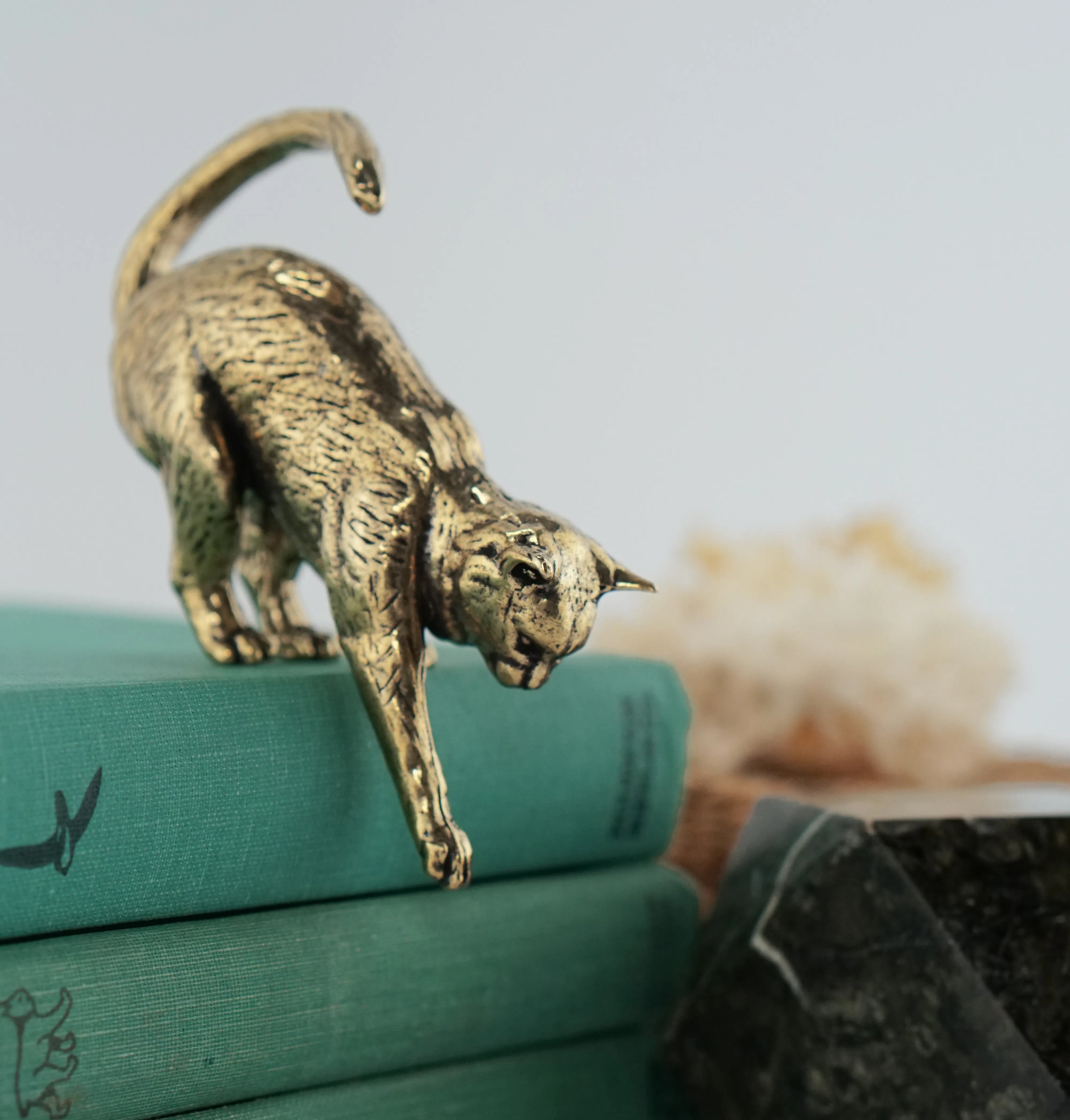 Solid miniature brass cats. Each with unique and lovable personalities.